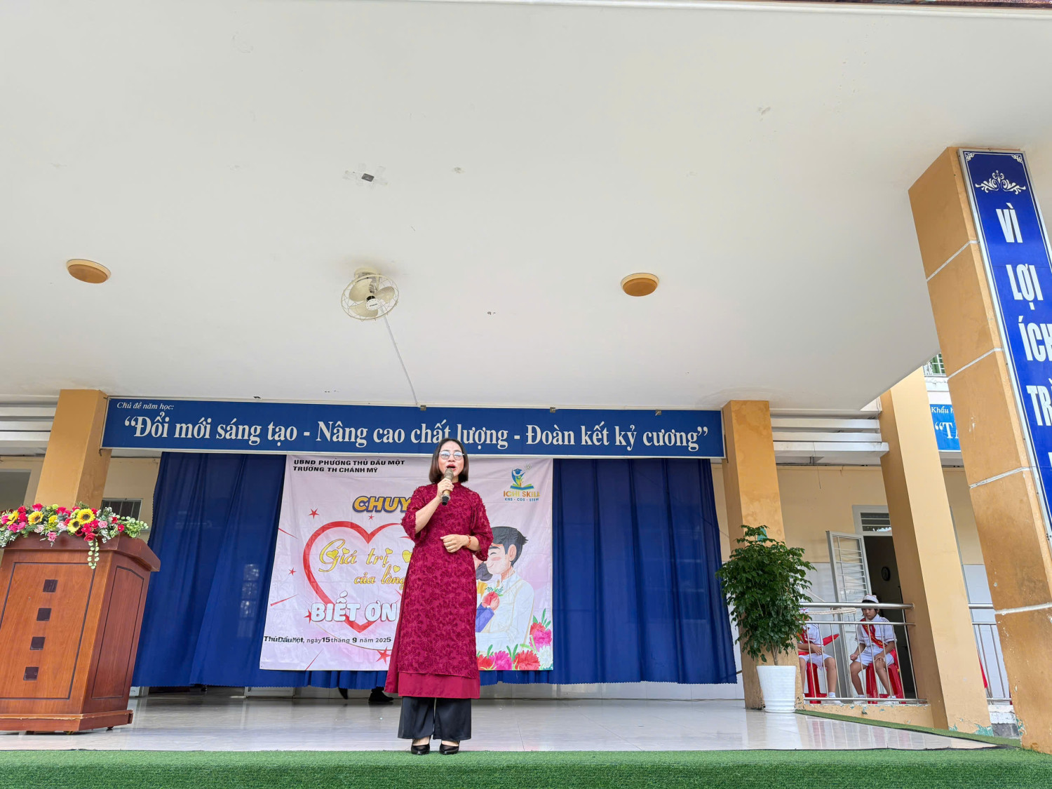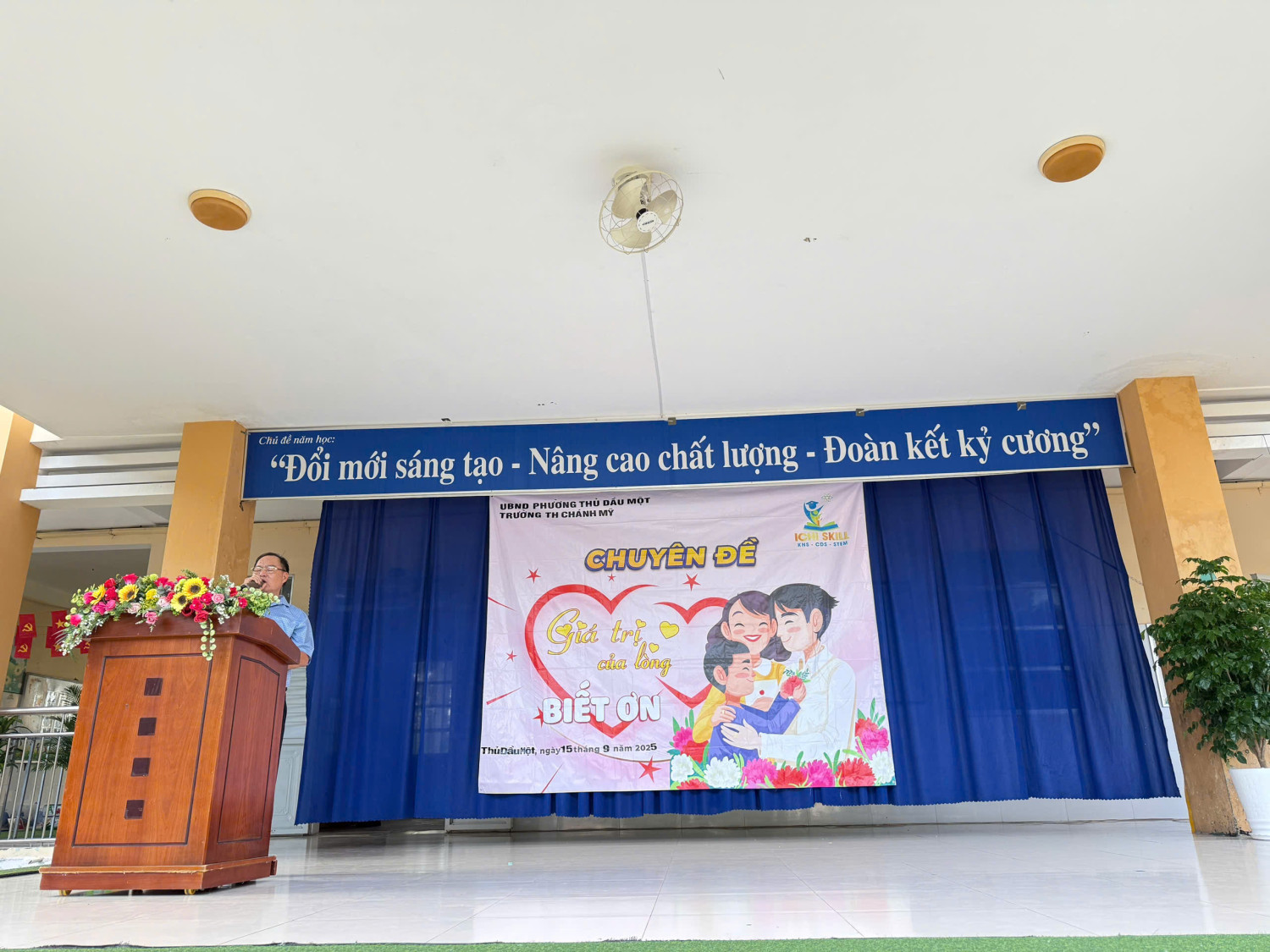 Lòng biết ơn luôn là thái độ sống cần nâng niu và trân trọng, đó là truyền thống tốt đẹp “Uống nước nhớ nguồn” từ bao đời nay của cha ông ta. Nhằm giúp các em học sinh có cơ hội lắng mình lại, cảm nhận được những giá trị của lòng biết ơn, hiểu rõ hơn về lòng biết ơn với ông bà, cha mẹ, thầy cô; đồng thời phát triển hài hòa về thể chất, trí tuệ, tinh thần, đạo đức từ đó cố gắng học tập tốt, biết sống yêu thương hơn. Với ý nghĩa đó, sáng nay 15/9/2025 Trường TH Chánh Mỹ phối hợp Công ty ICHI KILL Giáo dục kỹ năng sống đã diễn ra buổi ngoại khóa tại sân trường chuyên đề với chủ đề “Giá trị lòng biết ơn”