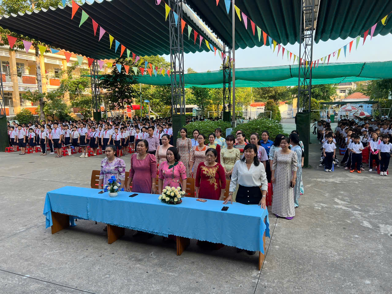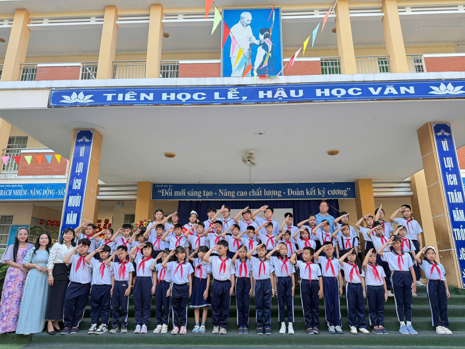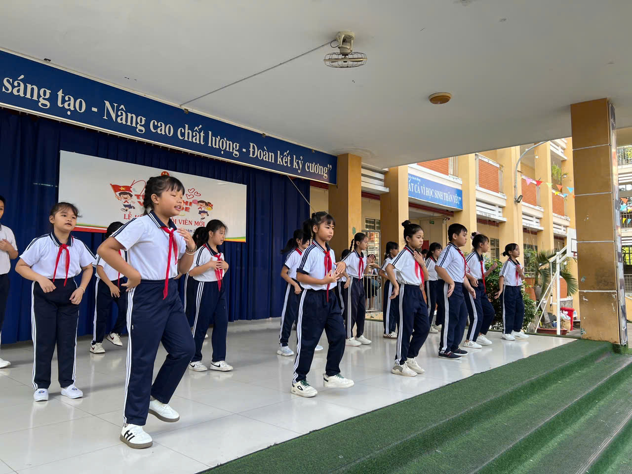 Hưởng ứng ngày Hội Thiếu Nhi Vui Khỏe là Xây dựng môi trường để các em thi đua học tập, rèn luyện sức khỏe, phát triển thể lực và trau dồi kỹ năng thông qua các hoạt động học tập, vui chơi giải trí, các hoạt động cộng đồng; từ đó giúp các em nâng cao nhận thức, sống tích cực, lành mạnh, có giá trị, biết yêu thương và chia sẻ. Tạo điều kiện để các em chủ động tìm hiểu, nâng cao hiểu biết xã hội, các hoạt động bảo vệ môi trường; phát triển năng lực, tự hoàn thiện bản thân, đồng thời phát huy quyền tham gia của các em vào các vấn đề có liên quan đến trẻ em. Liên đội đã đồng diễn 2 bài : có hơn 300 đội viên tham gia đồng diễn 1/ Đồng diễn bài : Cùng Kun Bảo vệ muôn loài 2/ Đồng diễn bài : Hát vang trong kỷ nguyên mới