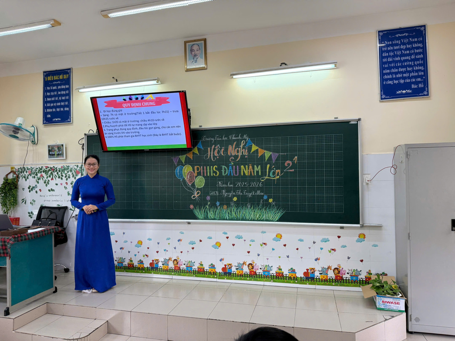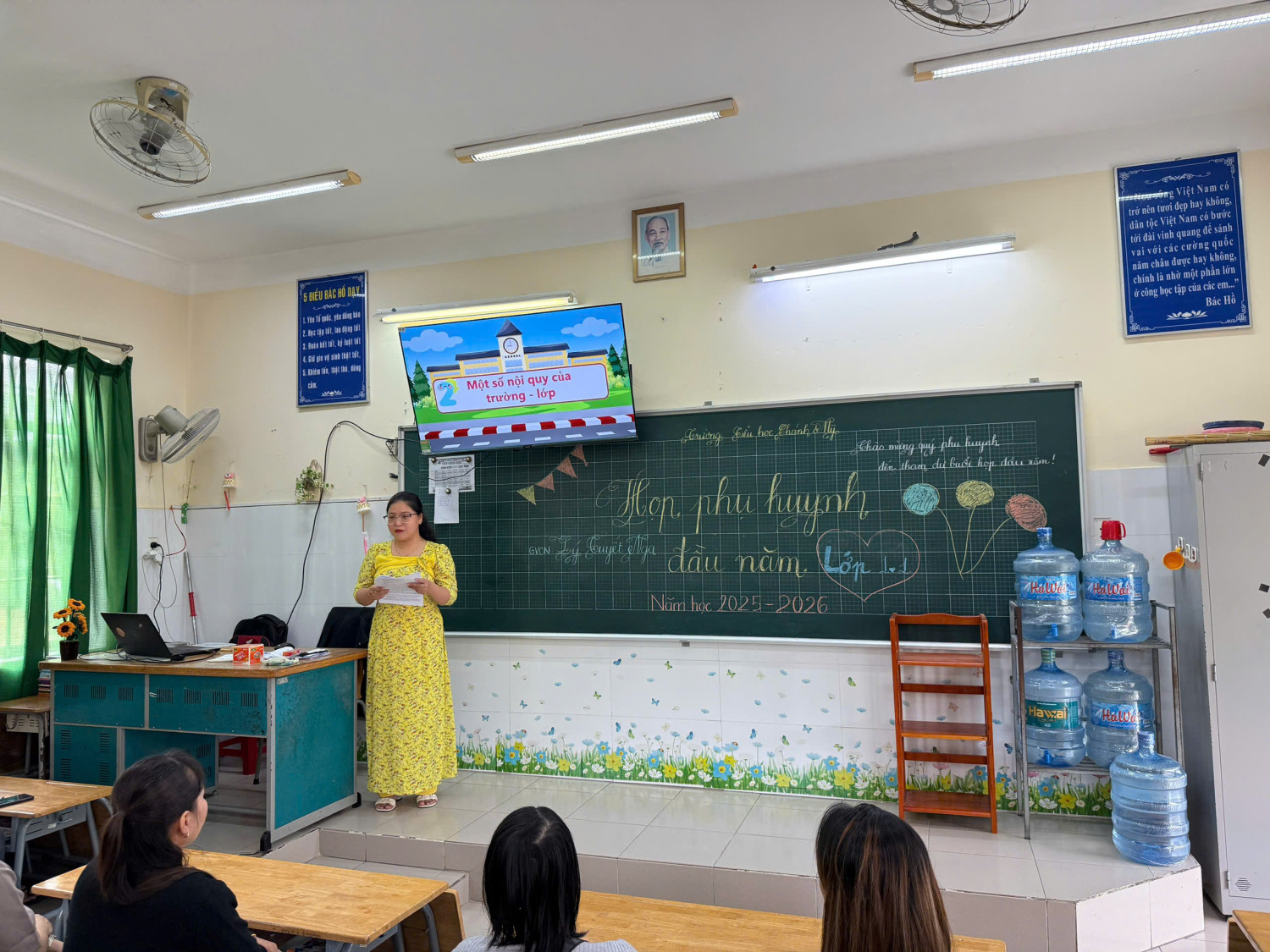 Sáng 14/9/2025 Trường TH Chánh Mỹ tổ chức họp phụ huynh học sinh đầu năm.Cô Ngô Thị Hàn Ni- Hiệu trưởng nhà trường thông qua các khoàn thu BHYT bắt buộc, tiền ăn bán trú theo qui định.