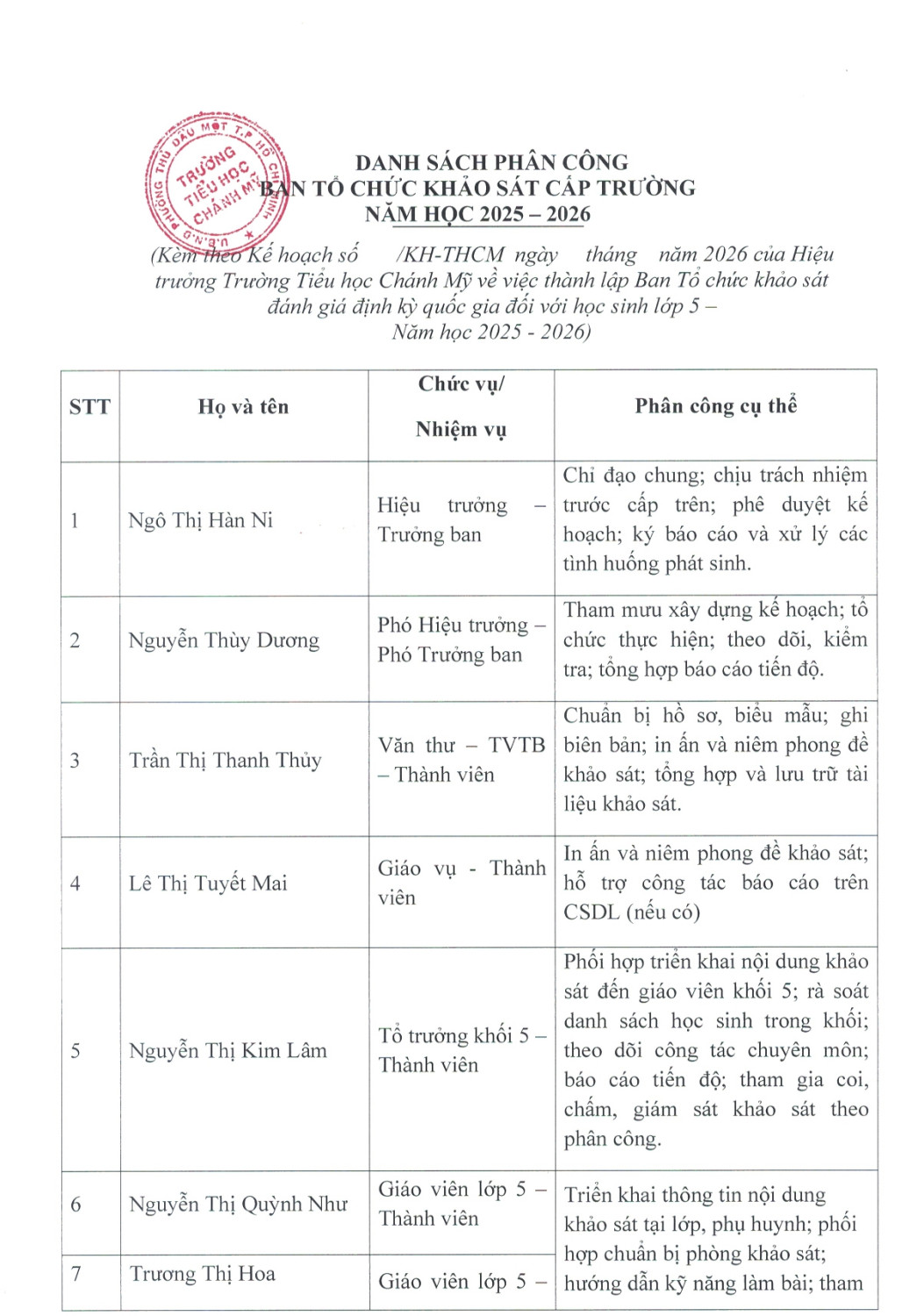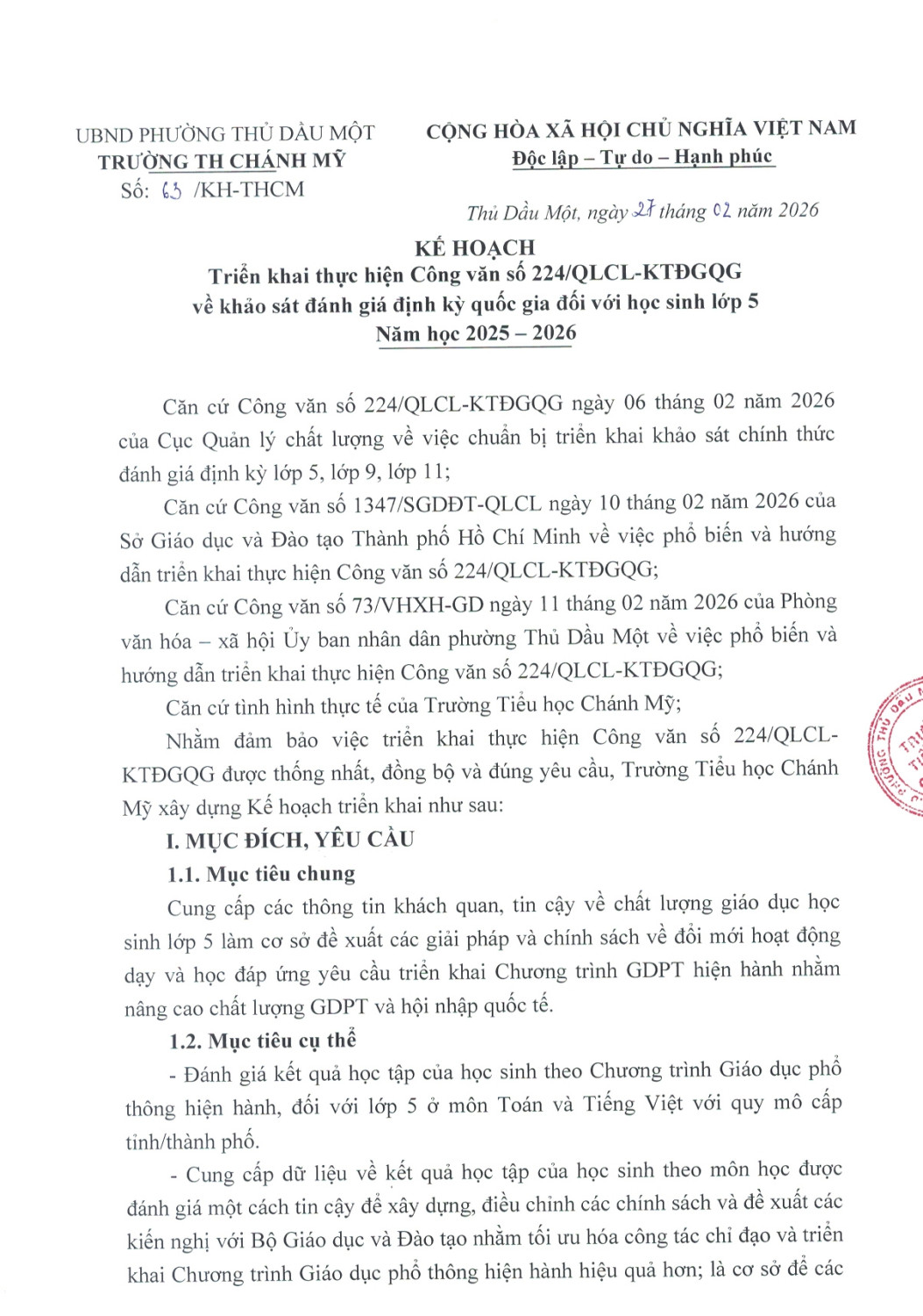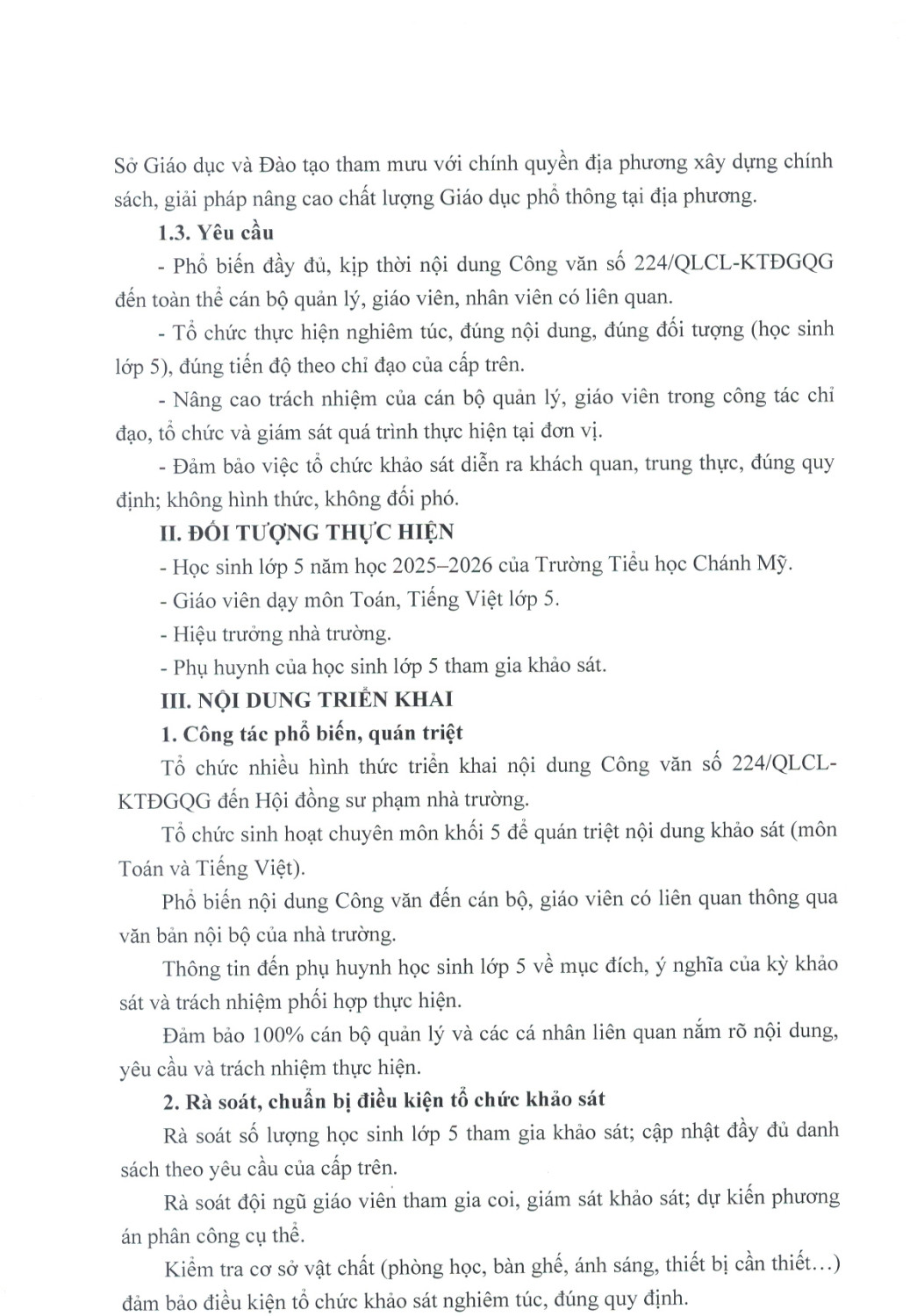 Kế Hoạch Khảo Sát Đánh Giá Định Kỳ Quốc Gia Đối Với Học Sinh Lớp 5