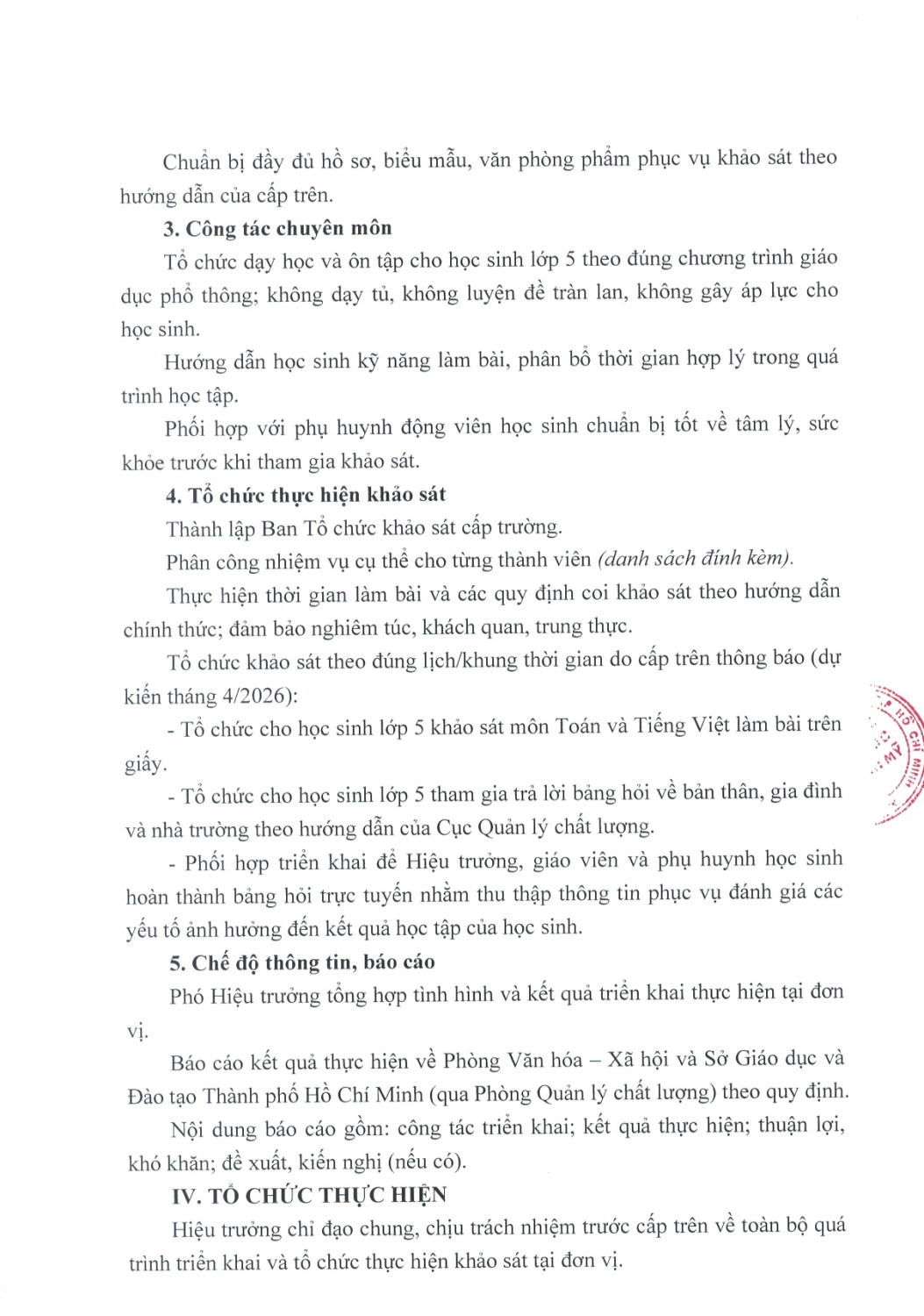 Kế Hoạch Khảo Sát Đánh Giá  Định Kỳ Quốc Gia Đối Với Học Sinh Lớp 5