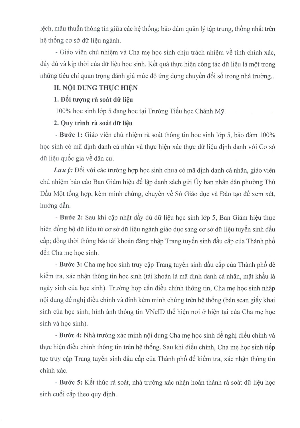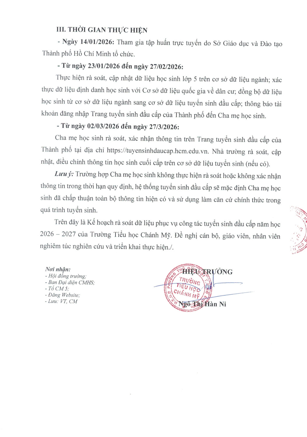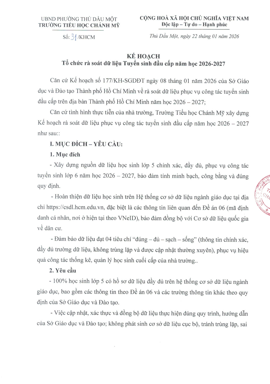 Kế hoạch tổ chức rà soát dữ liệu Tuyển sinh đầu cấp năm học 2026-2027
