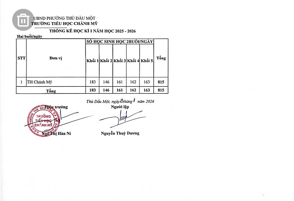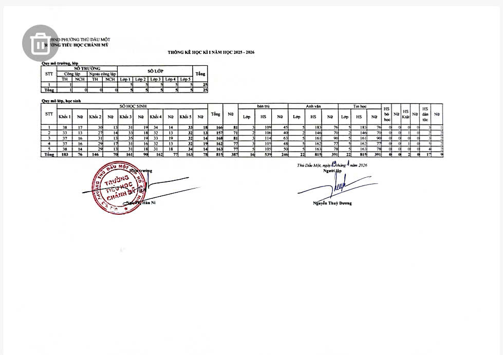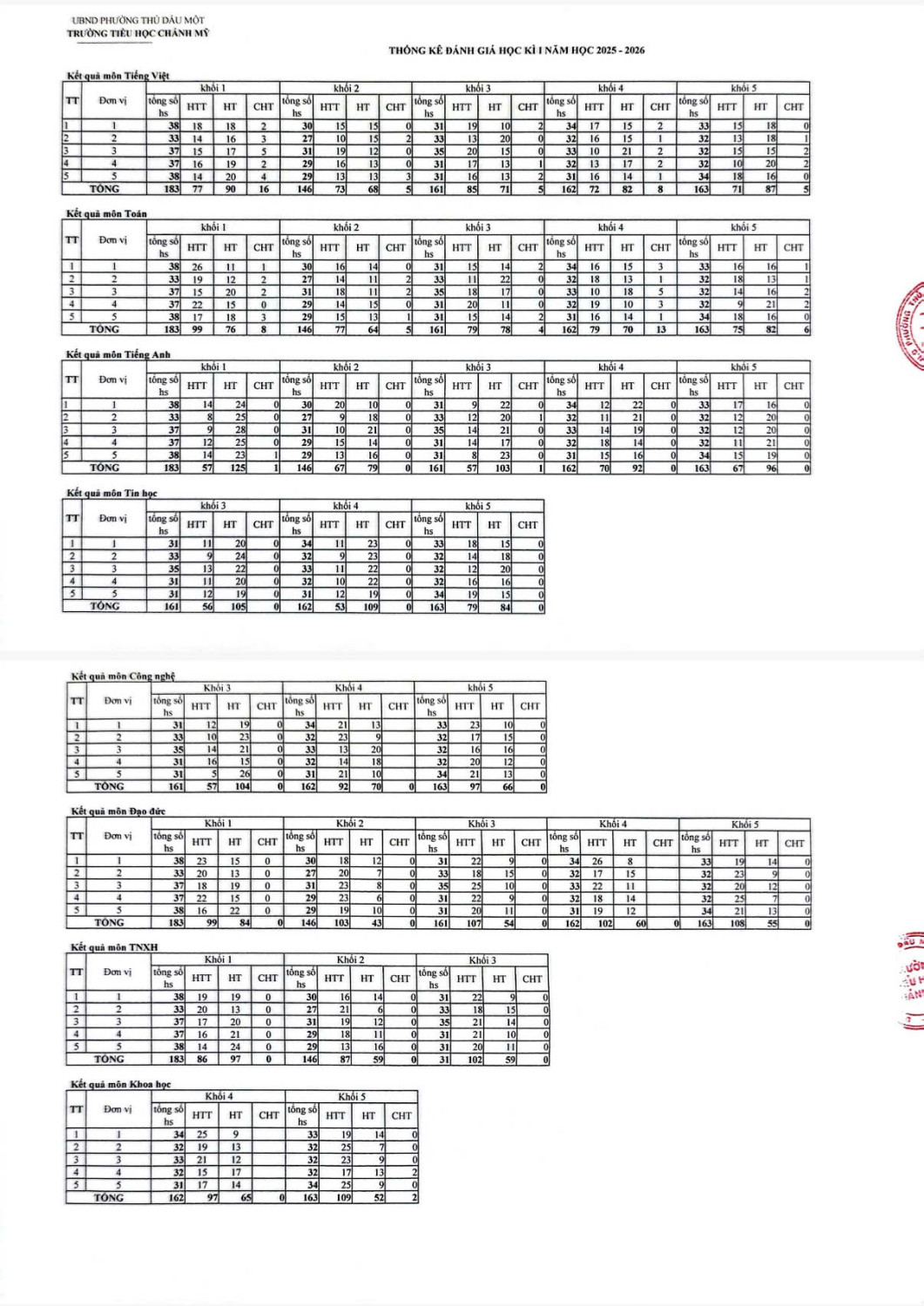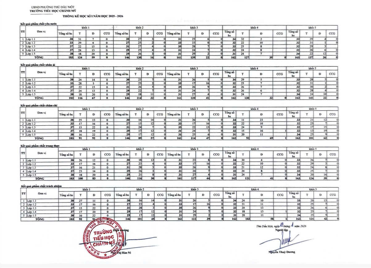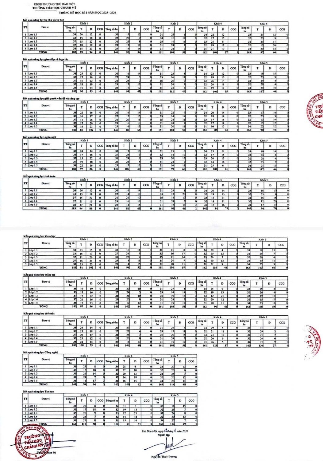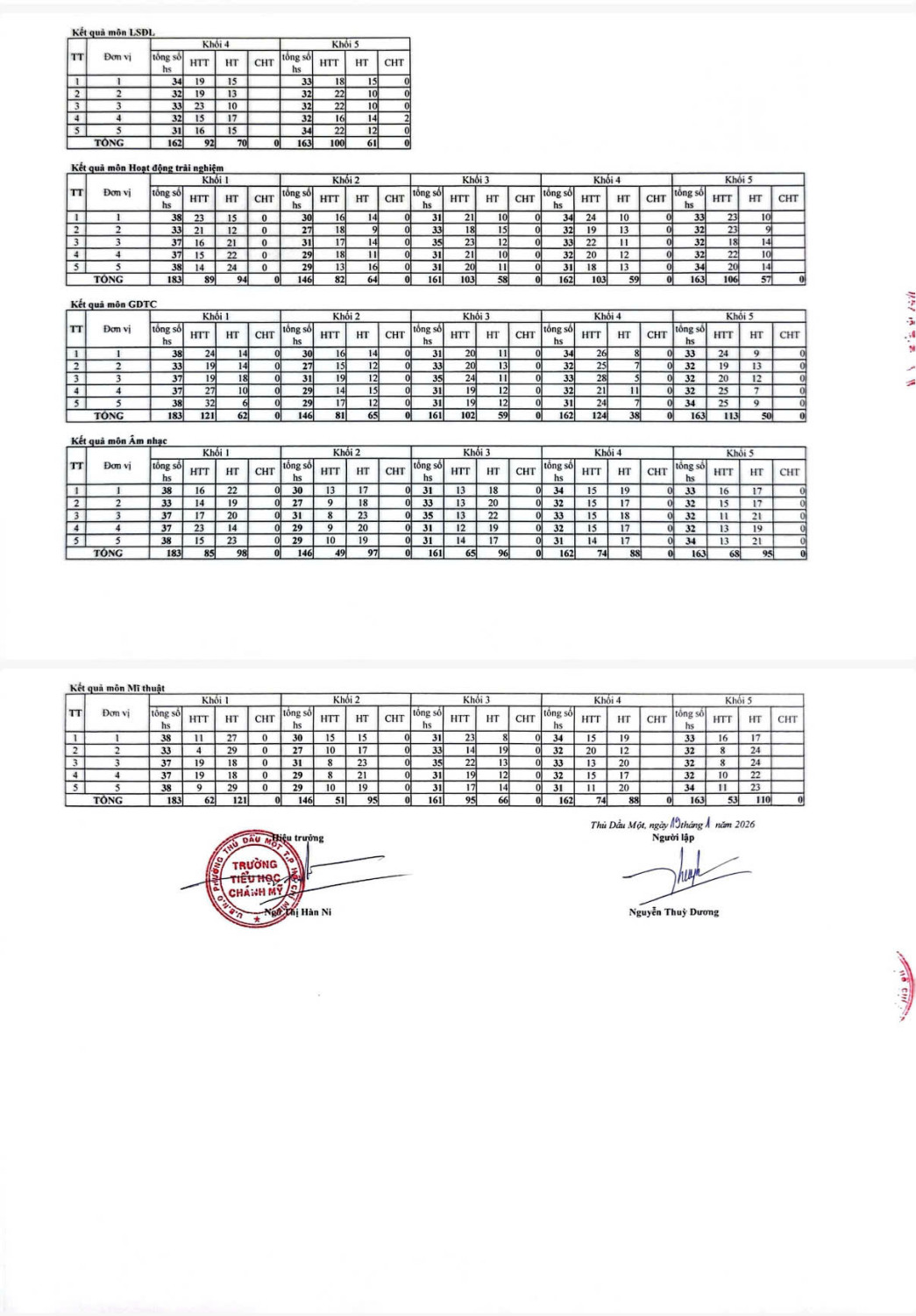 Kết Quả Tự Đánh Giá Chất Lượng Giáo Dục Học Kỳ 1 NH 2025-2026