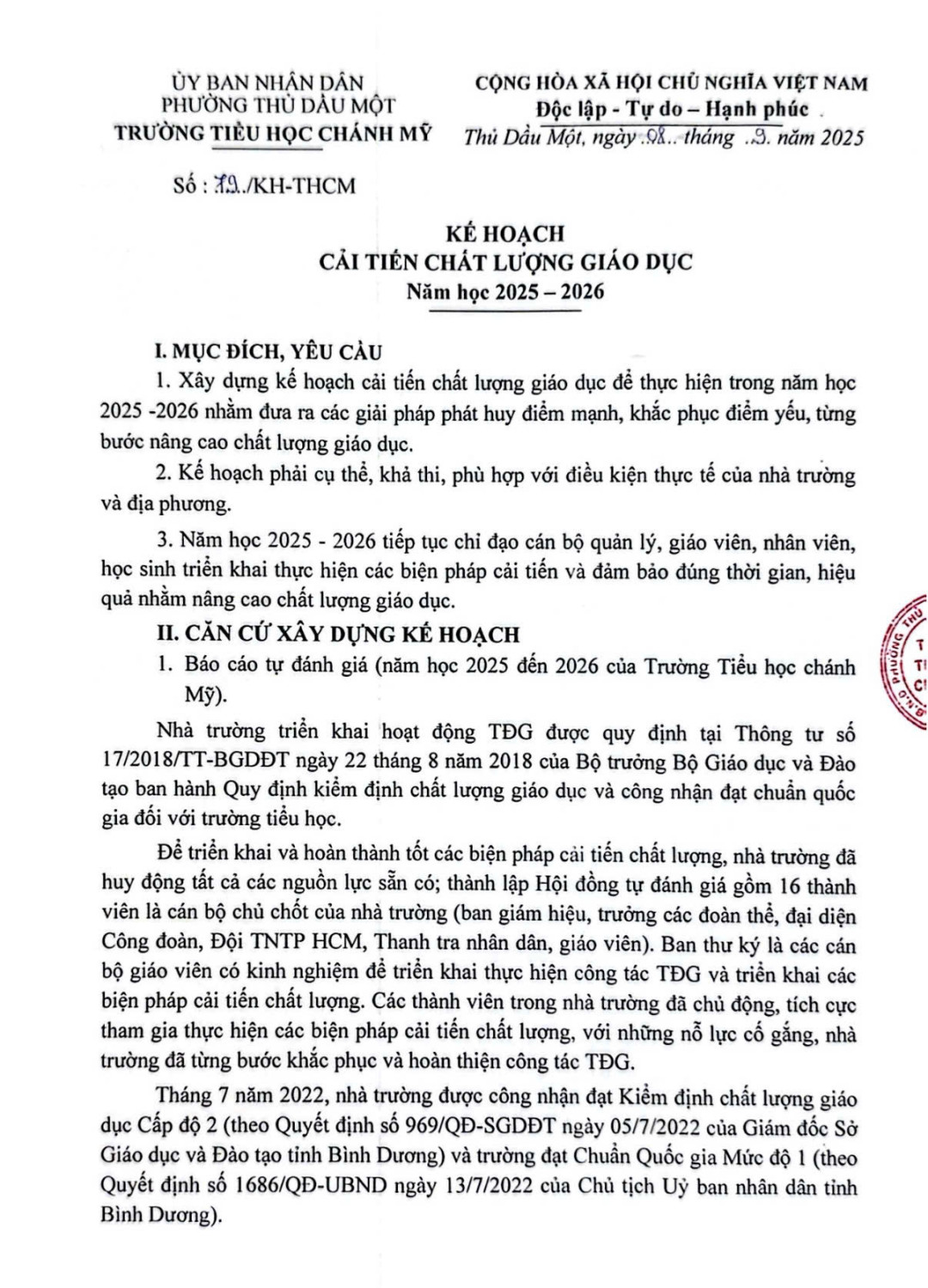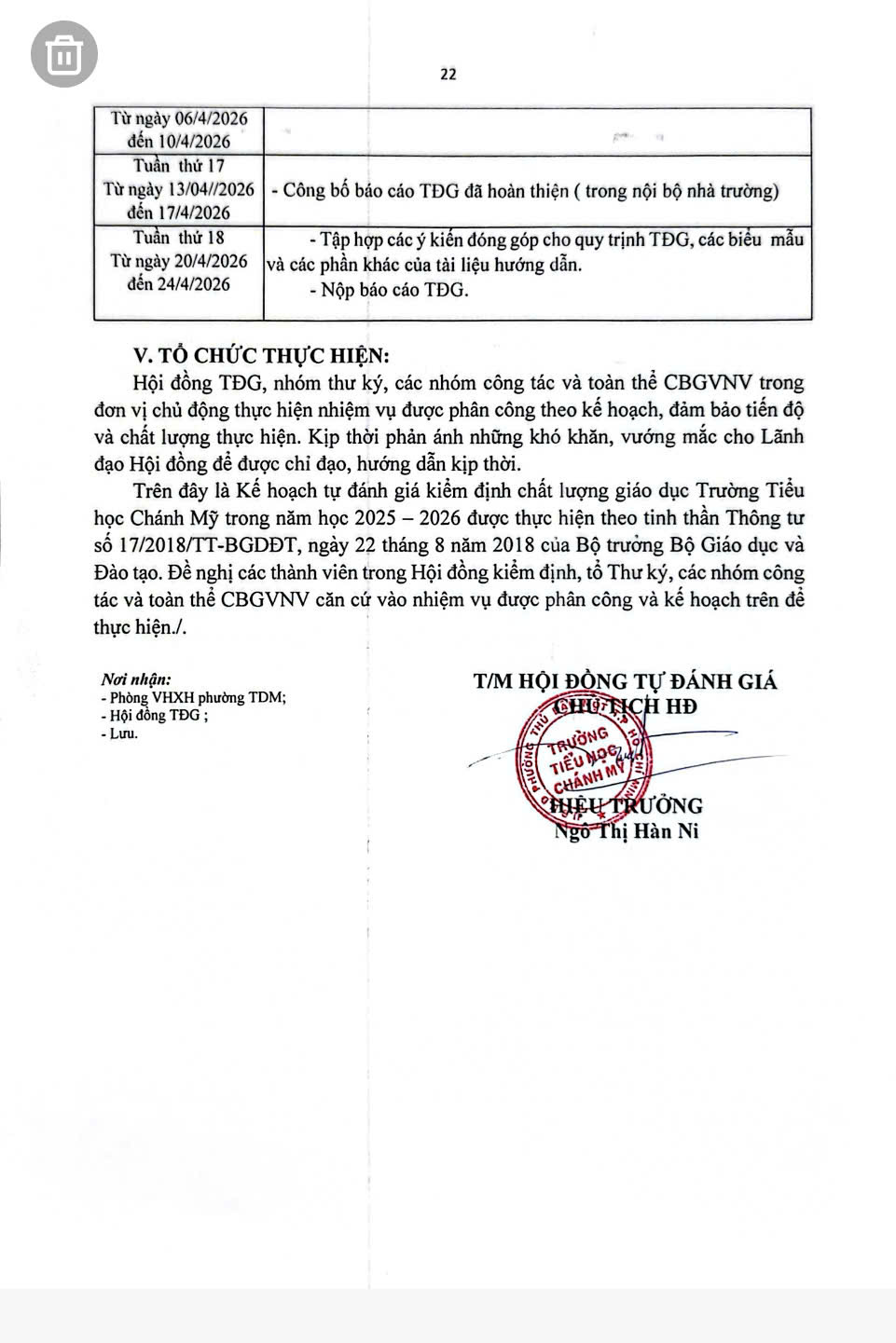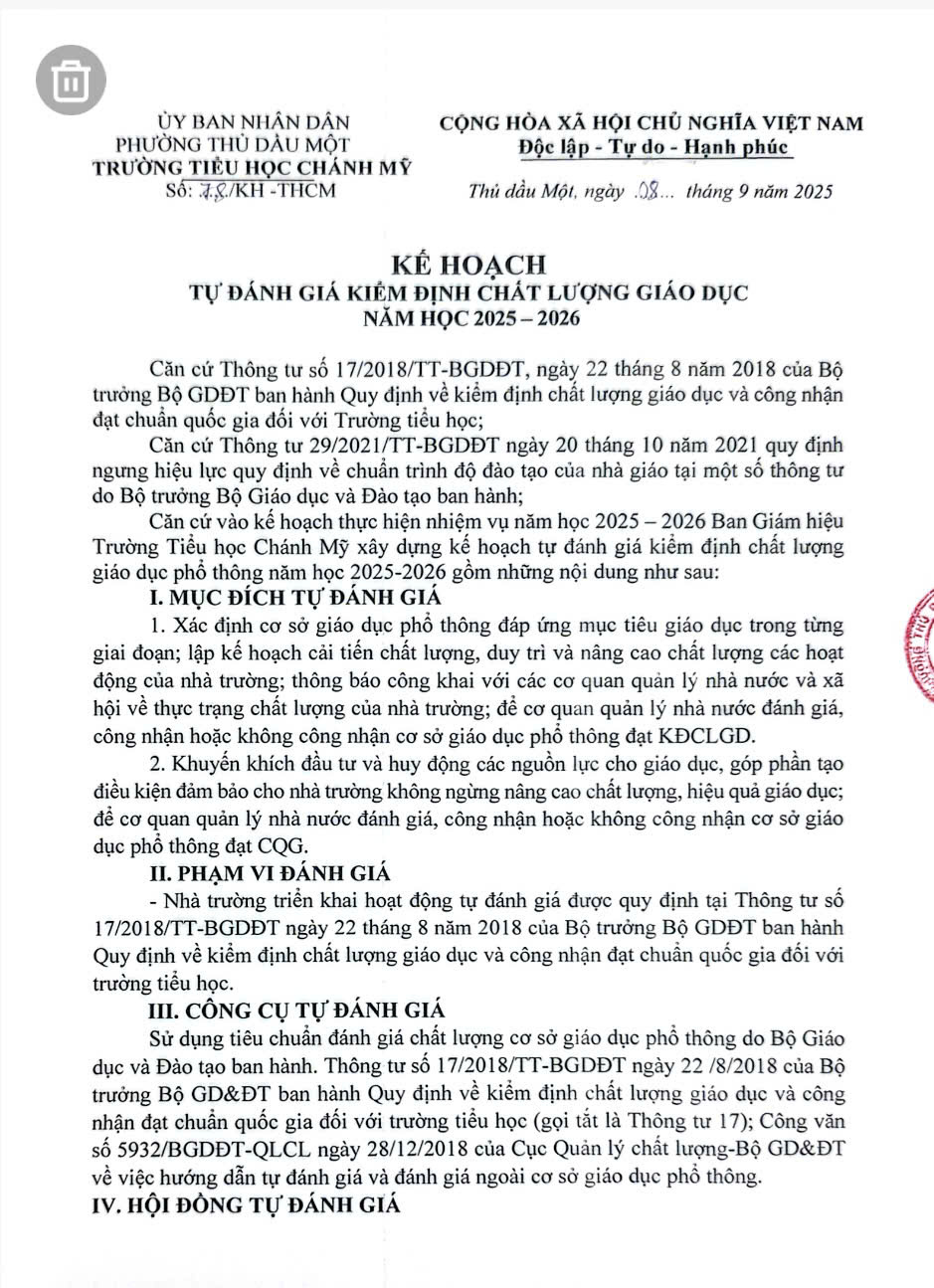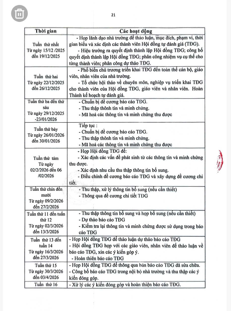 Kết Quả Tự Đánh Giá Kiểm Định Chất Lượng Giáo Dục Năm Học 2025-2026