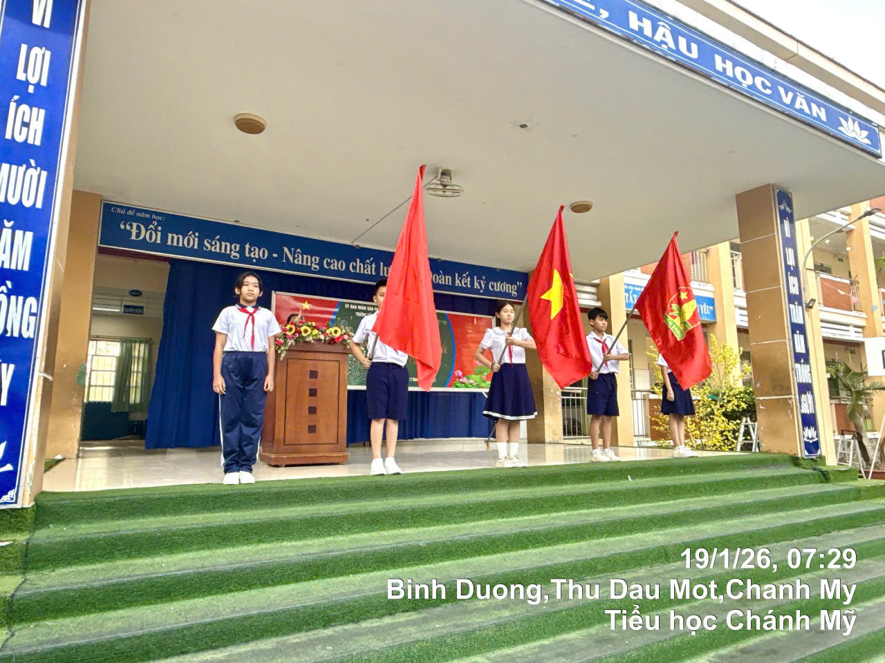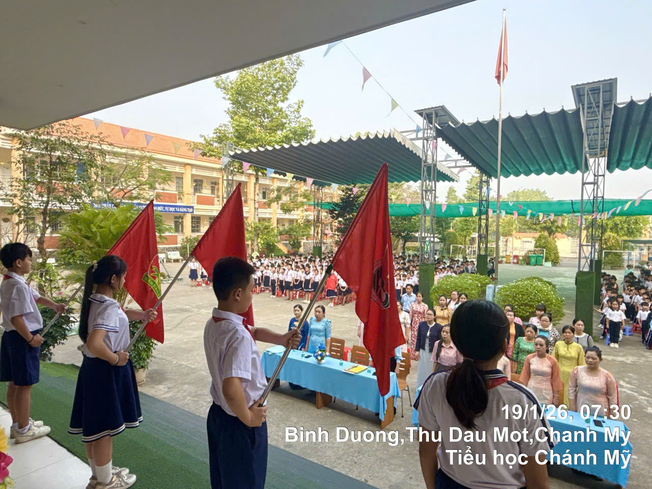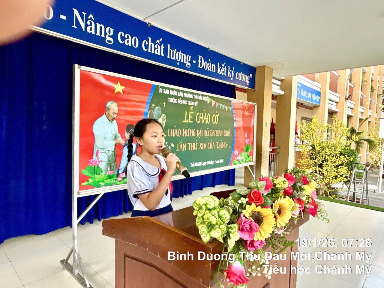 Nhằm hưởng ứng chào mừng Đại hội đại biểu toàn quốc lần thứ XIV.  Sáng ngày 19/01/2026 Liên đội TH Chánh Mỹ đã long trọng tổ chức Lễ Chào Cờ chào mừng Đại hội đại biểu toàn quốc lần thứ XIV một cách trang nghiêm. Sau lễ chào cờ Liên đội đã tuyên truyền về Đại hội đại biểu toàn quốc lần thứ XIV cho Thầy Cô và hơn 800 Đội viên – Nhi đồng trong toàn liên Đội về Ý nghĩa của đại hội đại biểu toàn quốc lần thứ XIV và phát động phong trào thi đua học tốt chào mừng đại hội. Trong dịp nầy Liên đội đã phối hợp với công ty Bảo hiểm Cathy Bình Dương và Báo Thiếu Niên tiền Phong tổ chức phát thưởng cho 6 HS đạt giải KK và Tập thể Liên Đội TH Chánh Mỹ đã đạt giải KK tập thể.