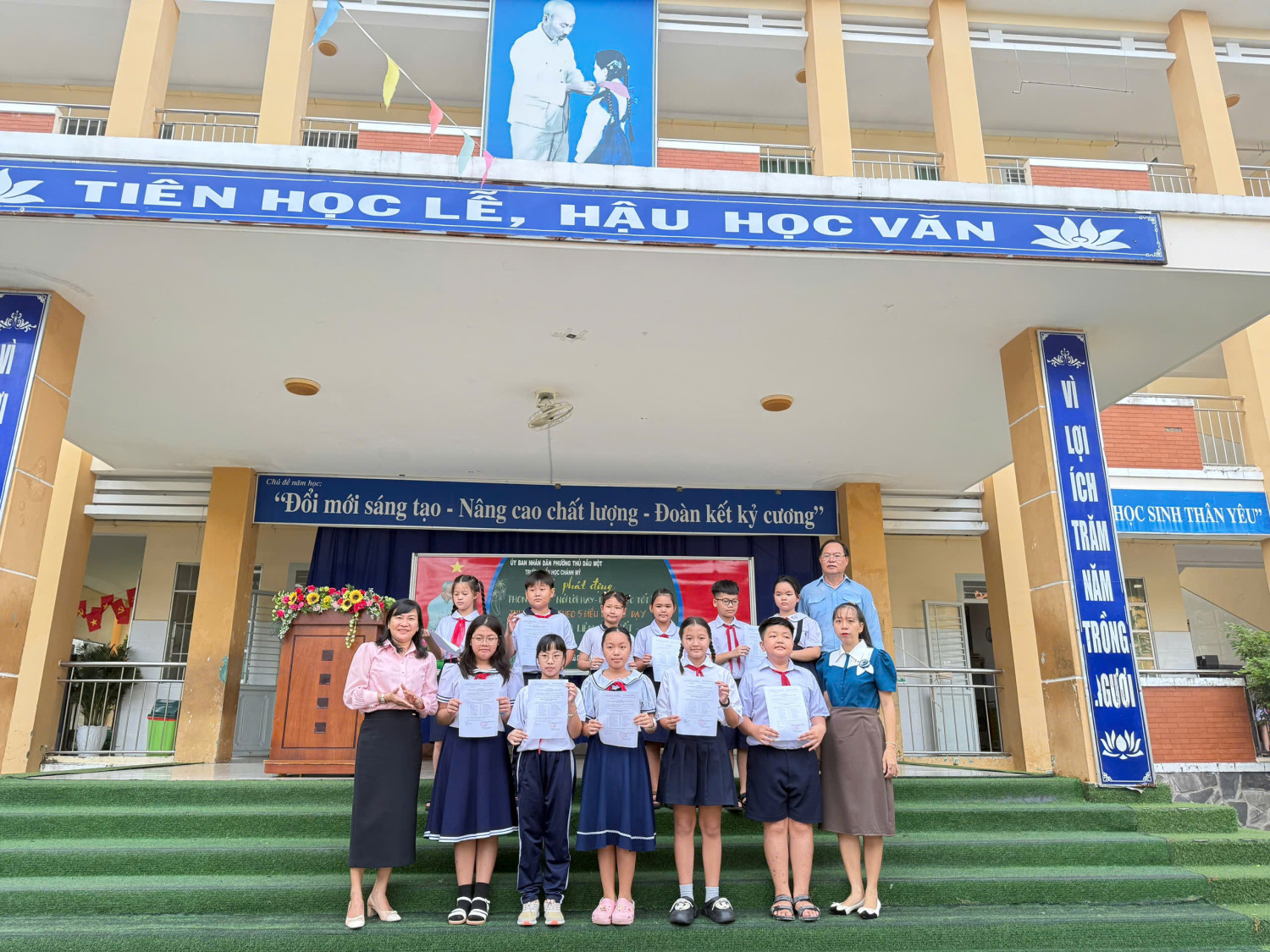 Qua phong trào nầy góp phần tạo môi trường tốt nhất để thiếu niên, Nhi đồng trong toàn Liên đội ra sức học tập, rèn luyện và phát triển toàn diện . Hôm nay ngày 10/11/2025 liên đội tiểu học Chánh Mỹ đã long trọng tổ chức LỄ PHÁT ĐỘNG PHONG TRÀO THI ĐUA “NÓI LỜI HAY – LÀM VIỆC TỐT” THI ĐUA LÀM THEO 5 ĐIỀU BÁC HỒ DẠY & PHONG TRÀO LIÊN ĐỘI 3 TỐT– CHI ĐỘI 3 TỐT . Cụ thể hóa phong trào “ thi đua thực hiện tốt 5 điều Bác Hồ dạy”, Liên đội đã phát động các qua phong trào thi đua “Trường lớp Em sạch đẹp an toàn”, “Vở sạch chữ đẹp”, “hội thi Đồ dùng vui để học”, trang trí ảnh Bác, treo bản đồ việt Nam…, tham gia 100% các phong trào mà nhà trường và các cấp phát động . 100% các Chi đội, lớp Nhi đồng luôn rèn luyện ý thức, tác phong thực hiện nghiêm túc nội quy nhà trường , phát huy vai trò tự học tập, tự rèn luyện và Tự quản ,Theo đó, nhiều phong trào, mô hình học tập làm theo 5 điều Bác Hồ dạy, như: “Nhi đồng học tốt, yêu khoa học”, “Giờ ra chơi An toàn” , “Gốc thư Giản” …“ Mỗi tuần một câu chuyện đẹp, Một cuốn sách hay, Một tấm gương sáng” , “Phân loại Thu gom và tái chế võ hộp sửa” …..
