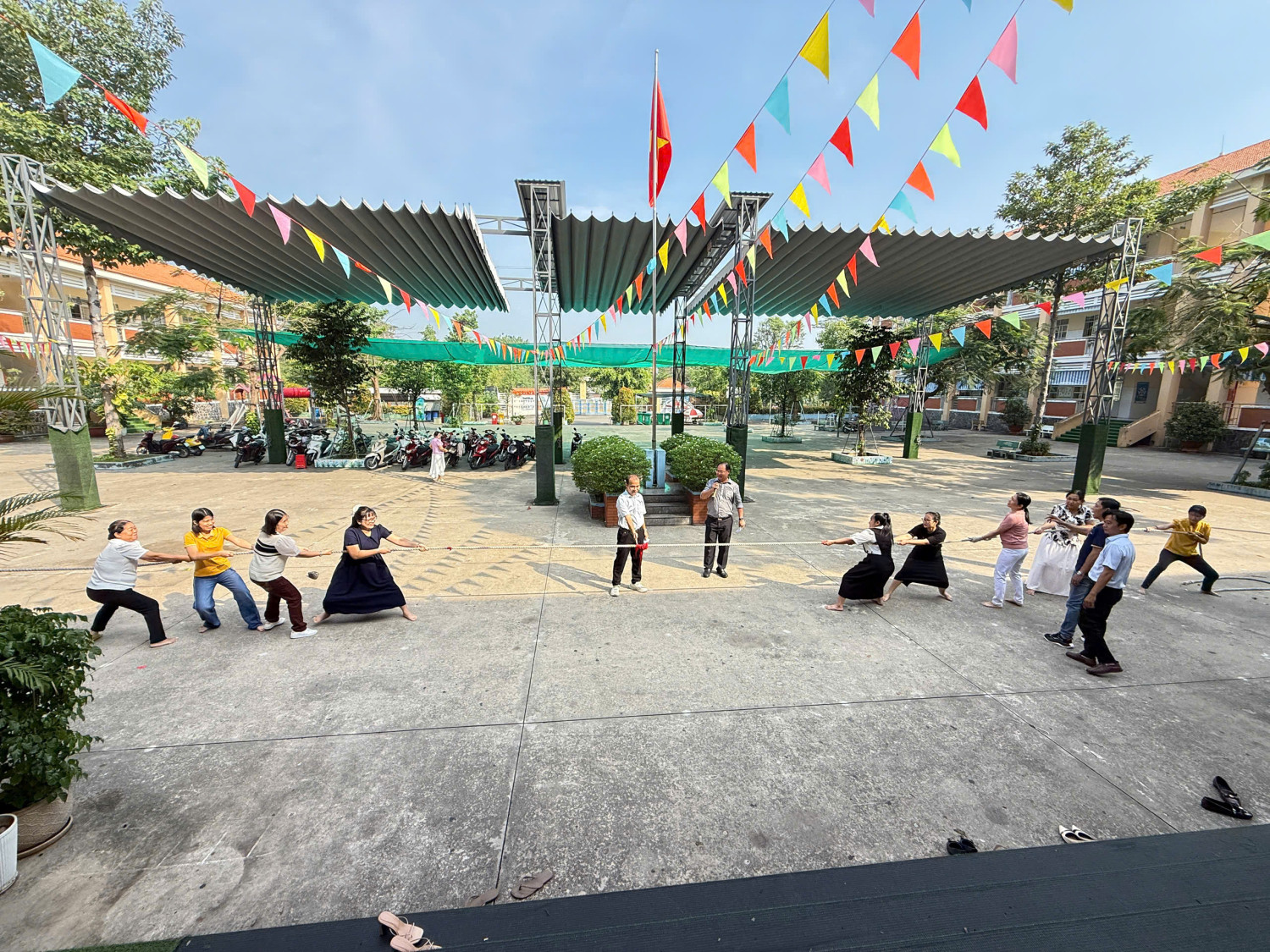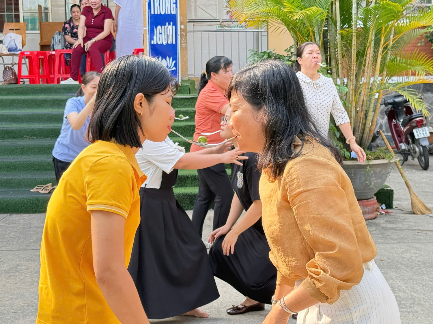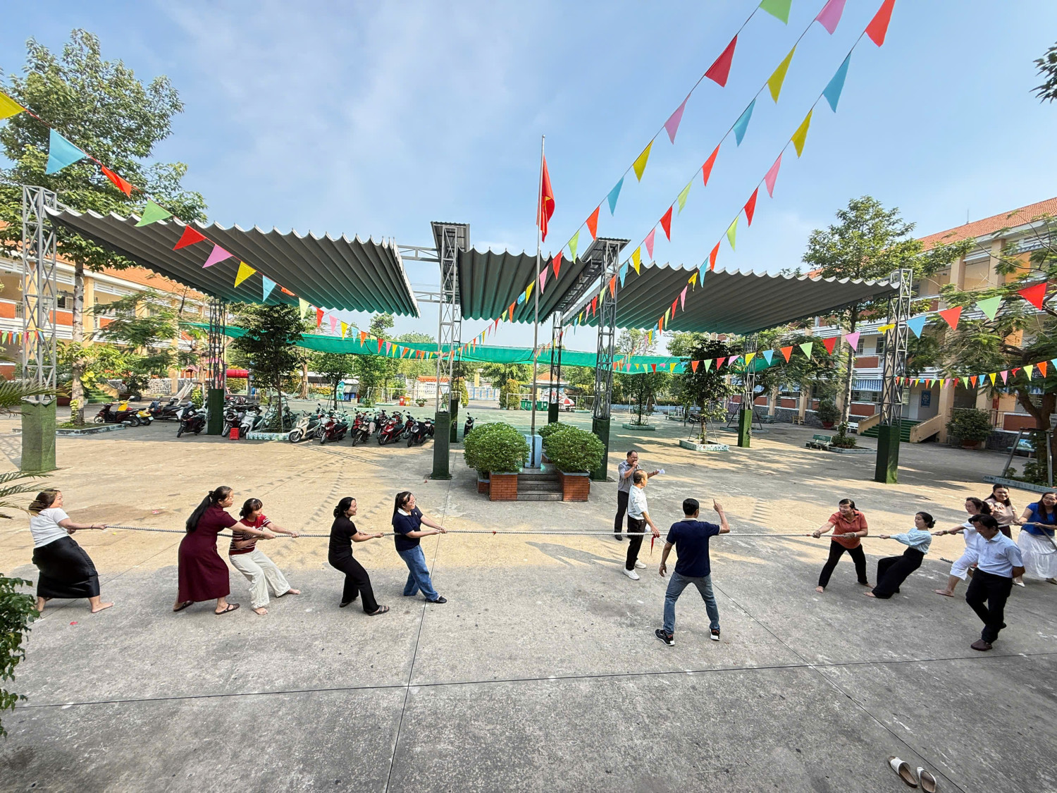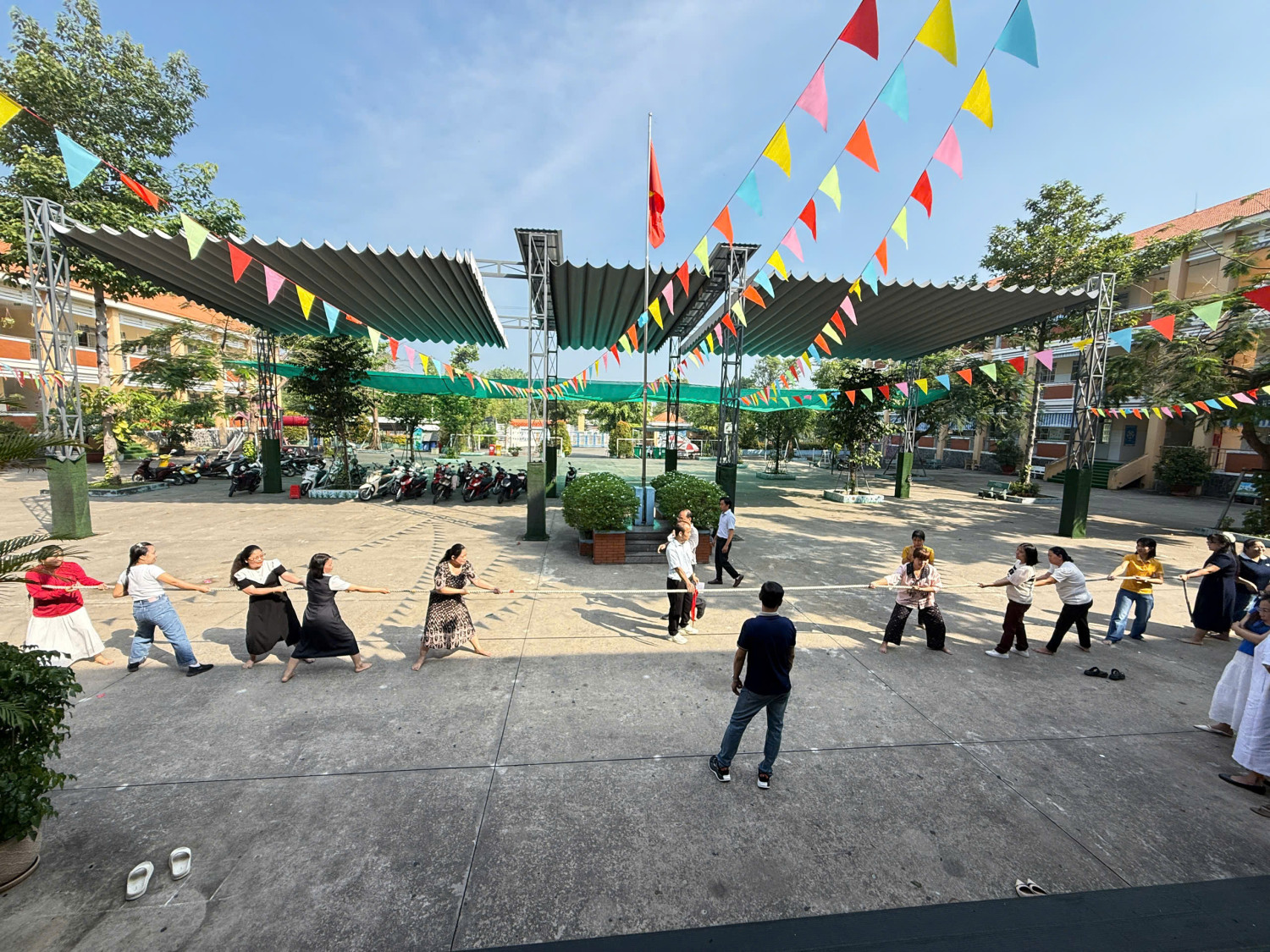 Nhà trường tổ chức các hoạt động vui tươi như ngậm muỗng chuyền chanh, kéo co, chọn giá đúng. Các tổ tham gia nhiệt tình, vui vẻ, đoàn kết.