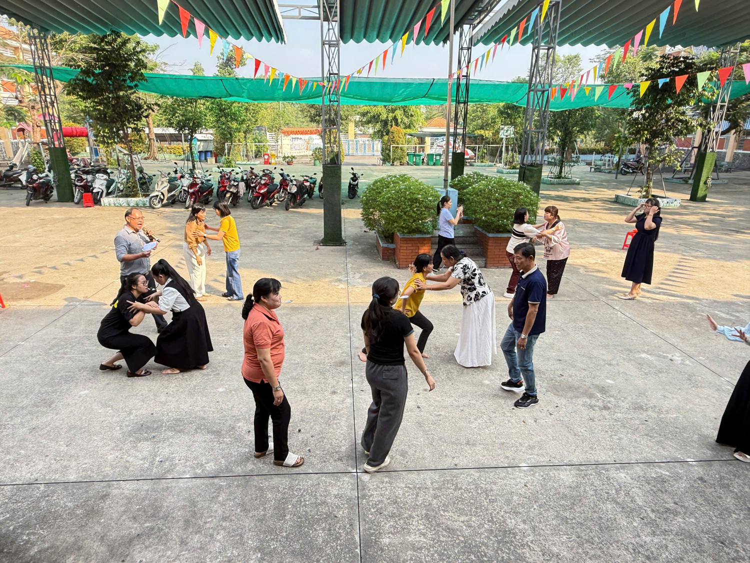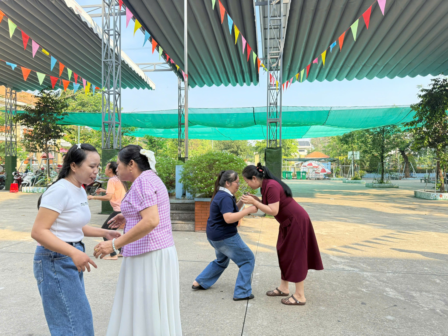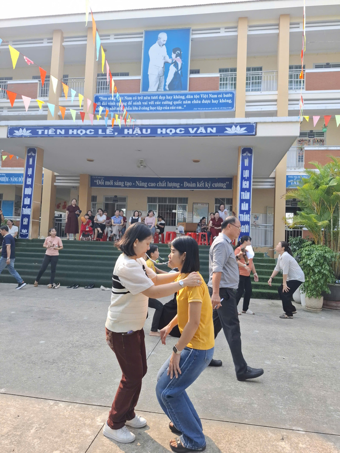 Nhà trường tổ chức các hoạt động vui tươi như ngậm muỗng chuyền chanh, kéo co, chọn giá đúng. Các tổ tham gia nhiệt tình, vui vẻ, đoàn kết.