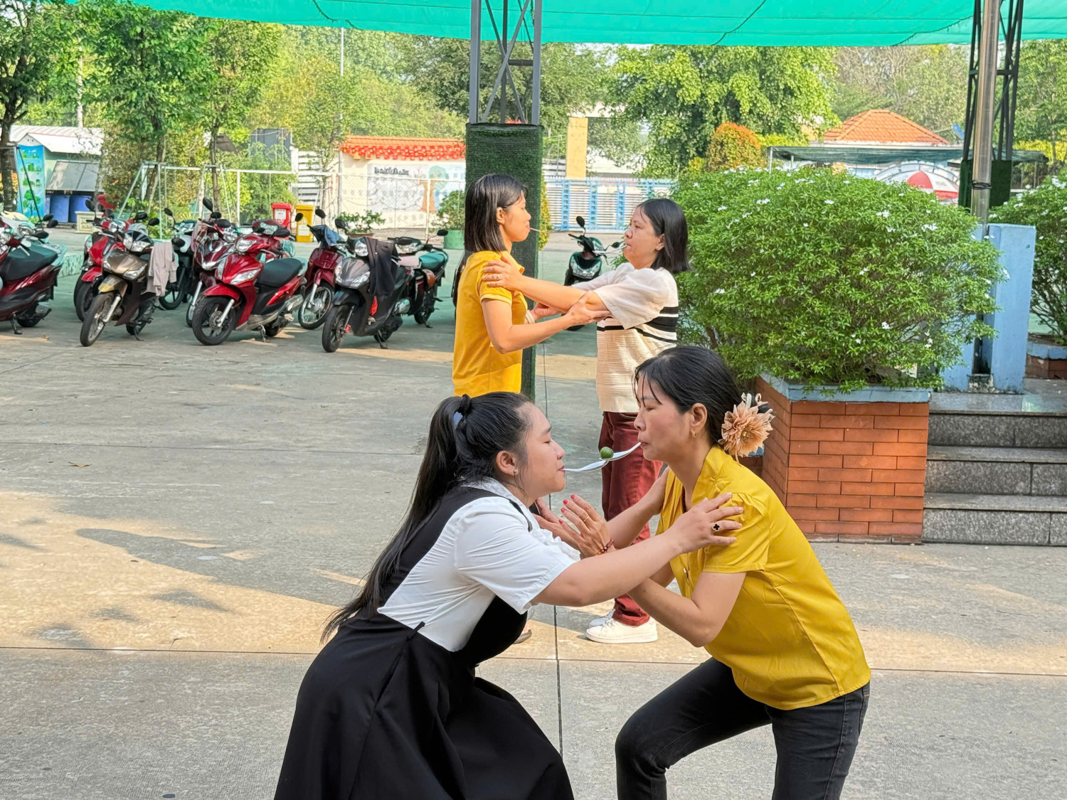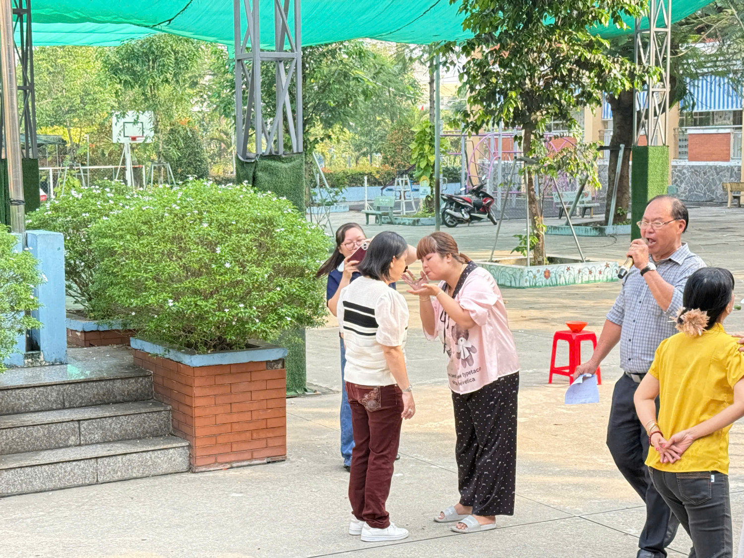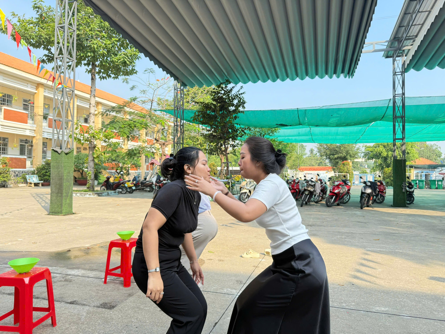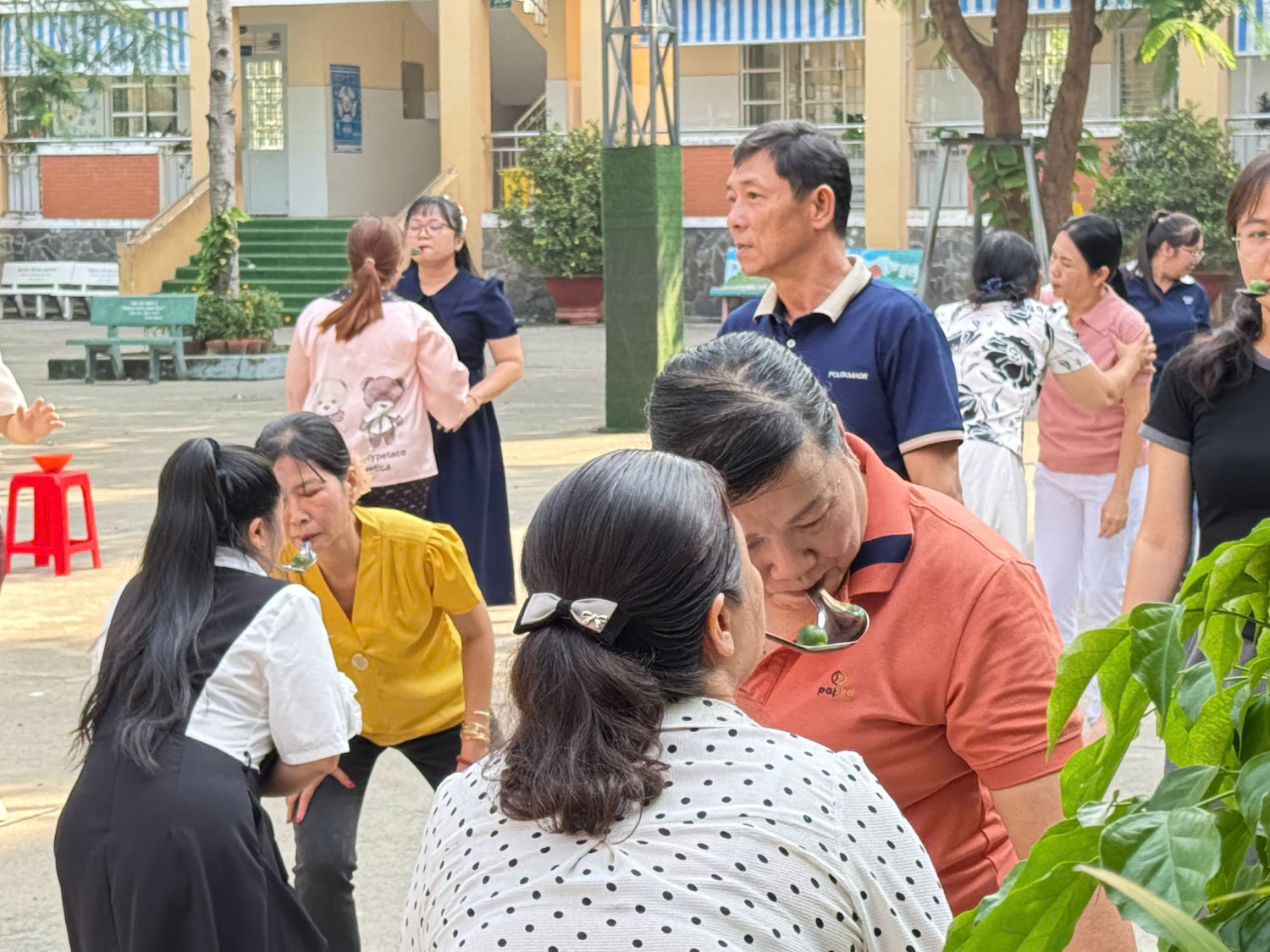 Nhà trường tổ chức các hoạt động vui tươi như ngậm muỗng chuyền chanh, kéo co, chọn giá đúng. Các tổ tham gia nhiệt tình, vui vẻ, đoàn kết.