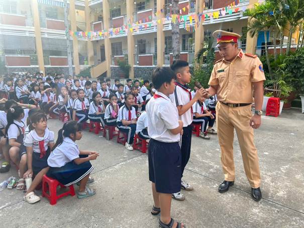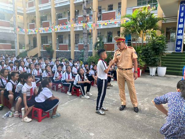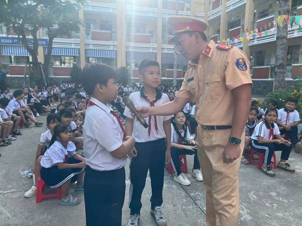 Trường Tiểu học Chánh Mỹ phối hợp công an phường Thủ Dầu Một tham gia tuyên tuyền An toàn giao thông cho hơn 800hs.