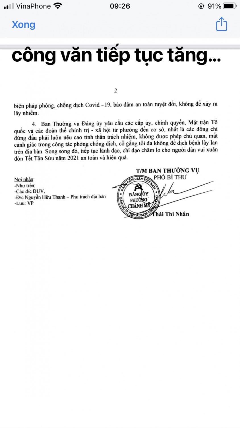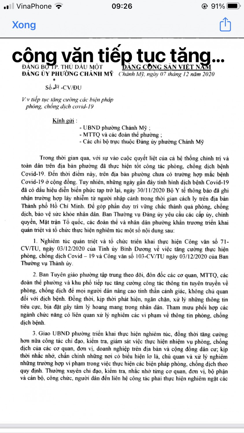 V/v tiếp tục tăng cường phòng, chống dịch Covid-19 trên địa bàn thành phố Thủ Dầu Một trong tình hình mới